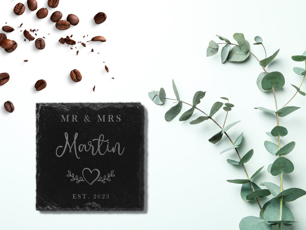 Personalised Mr & Mrs Slate Coaster Set