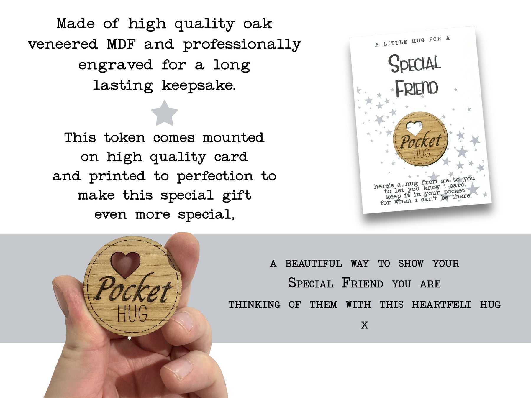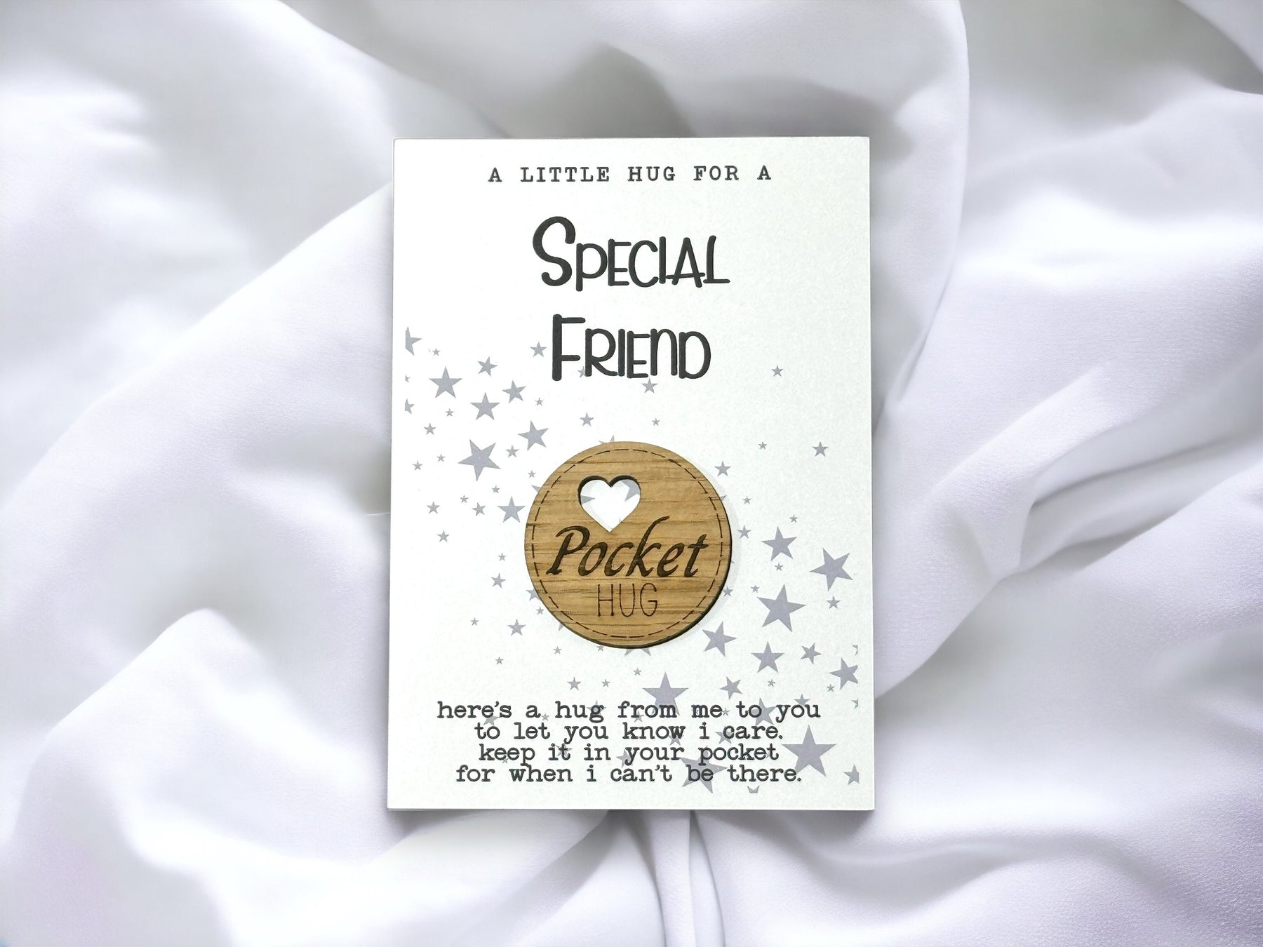 Are you looking for a small and meaningful way to show your amazing special friend you care about them? Our "Special friend" pocket hug is the perfect way to send a little love and encouragement to someone special.